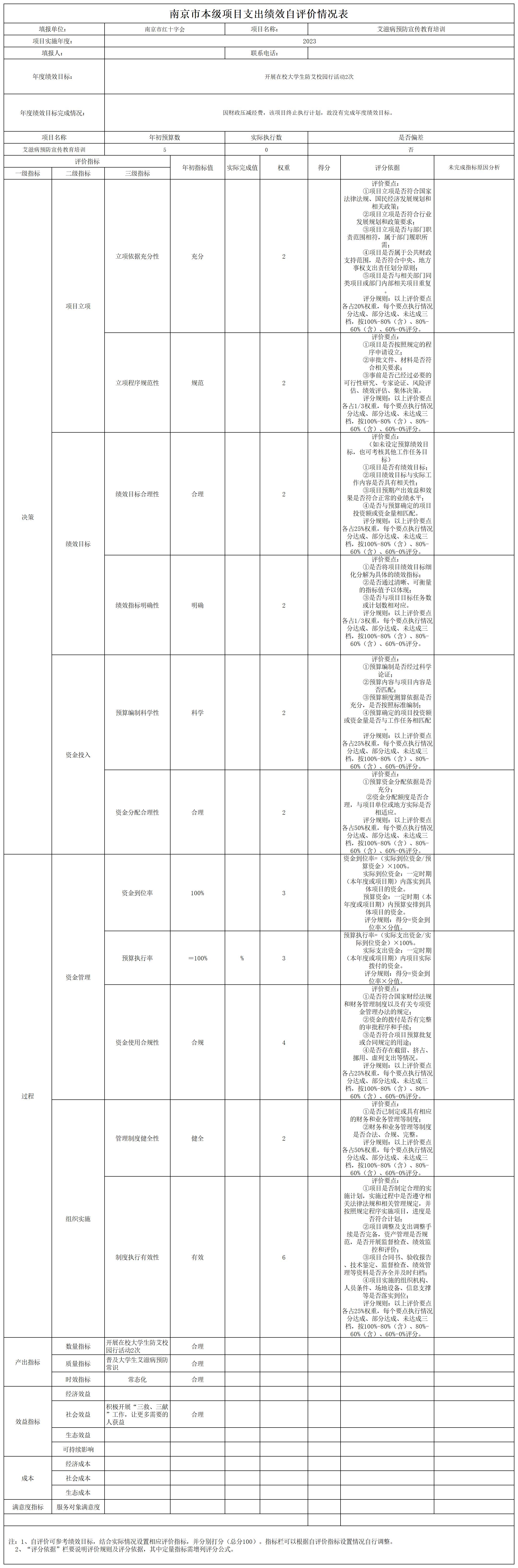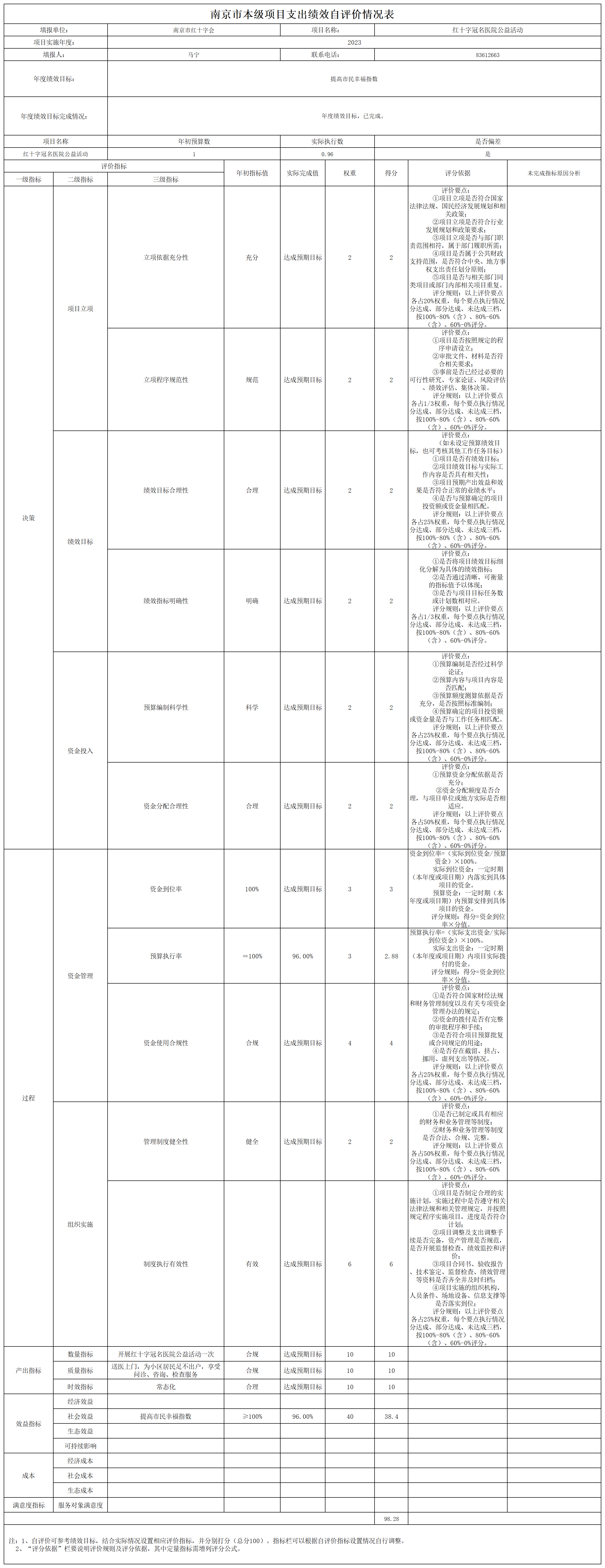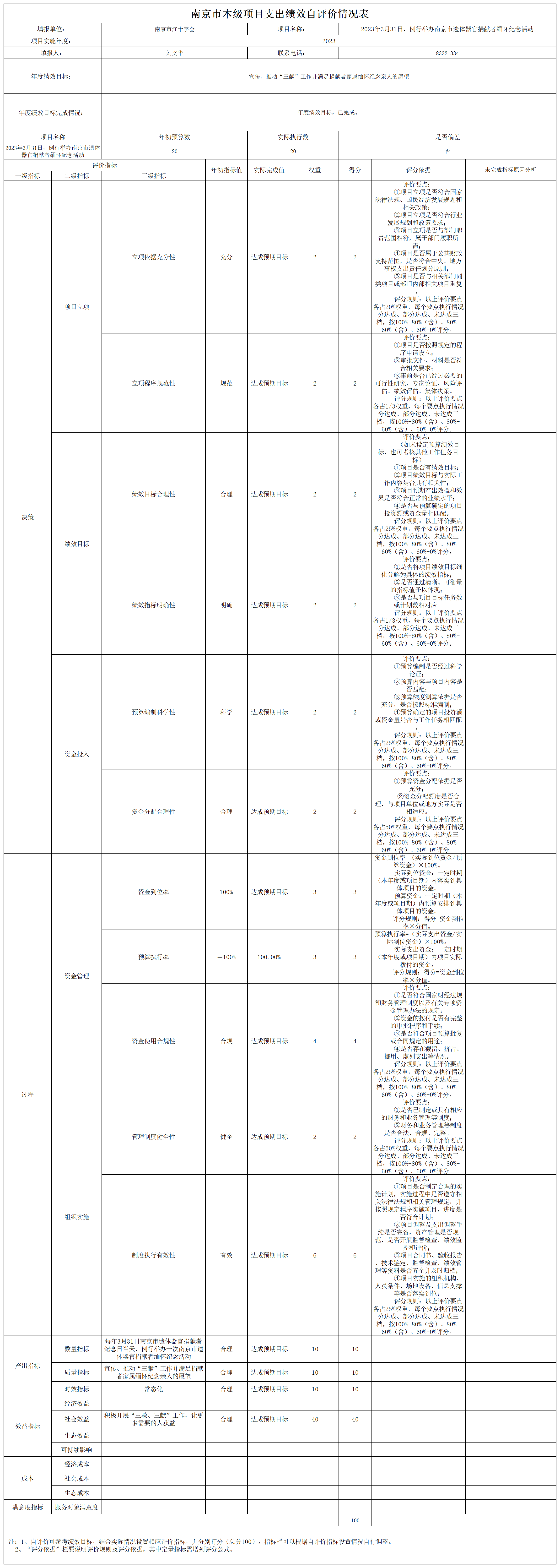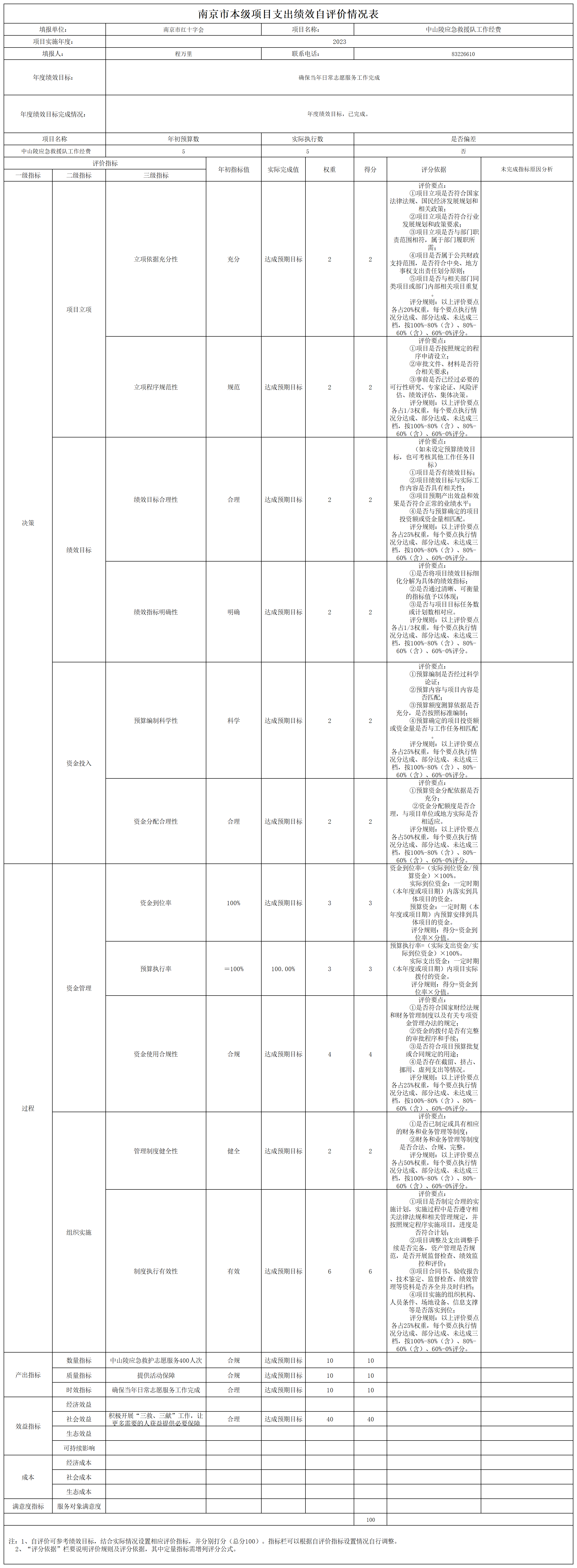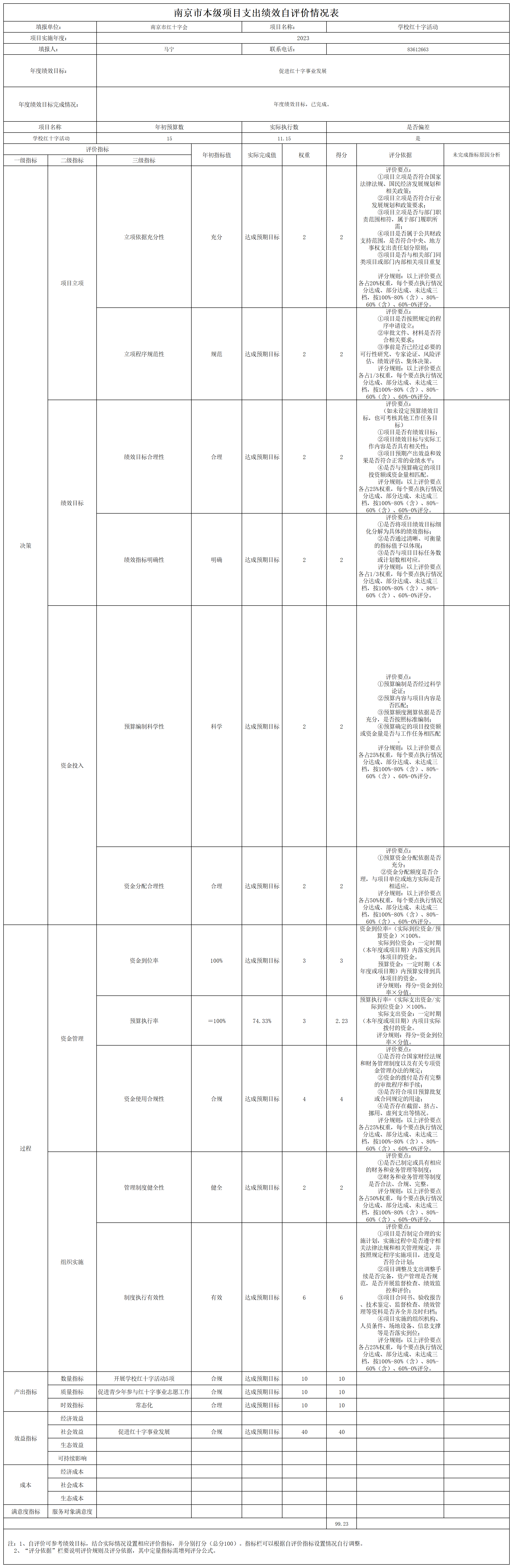 南京市红十字会2023年度运转类-其他项目支出绩效自评表