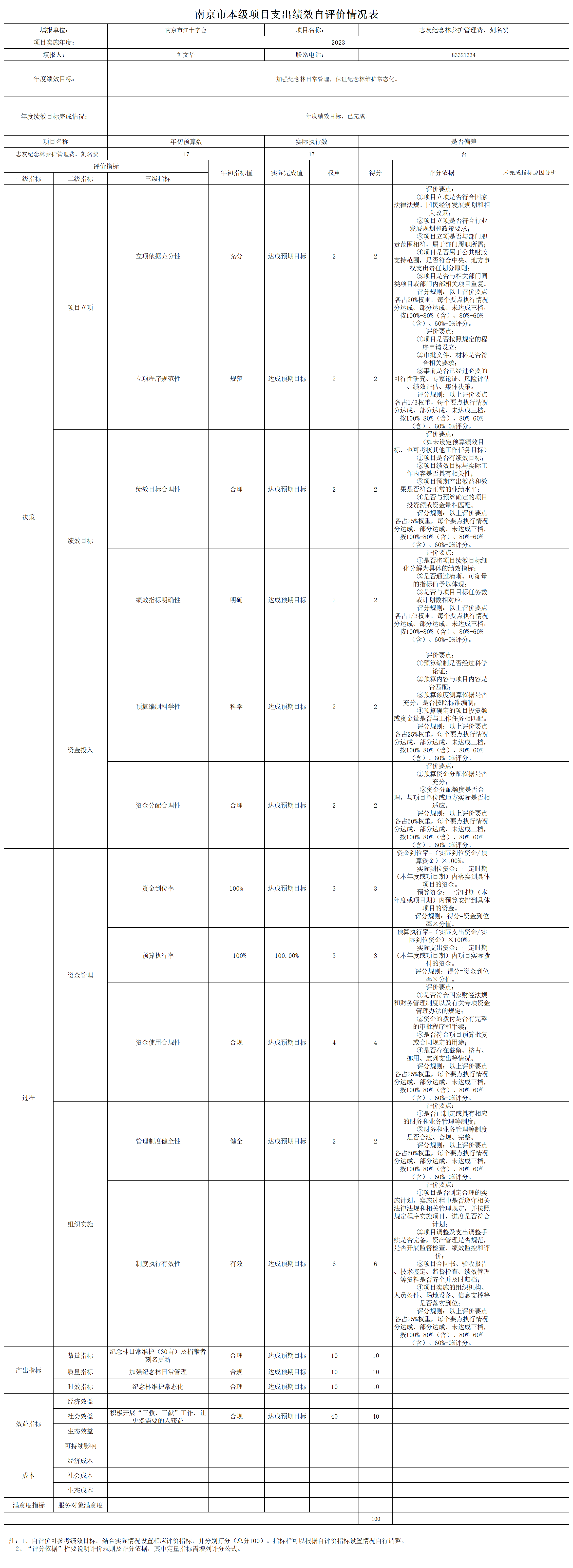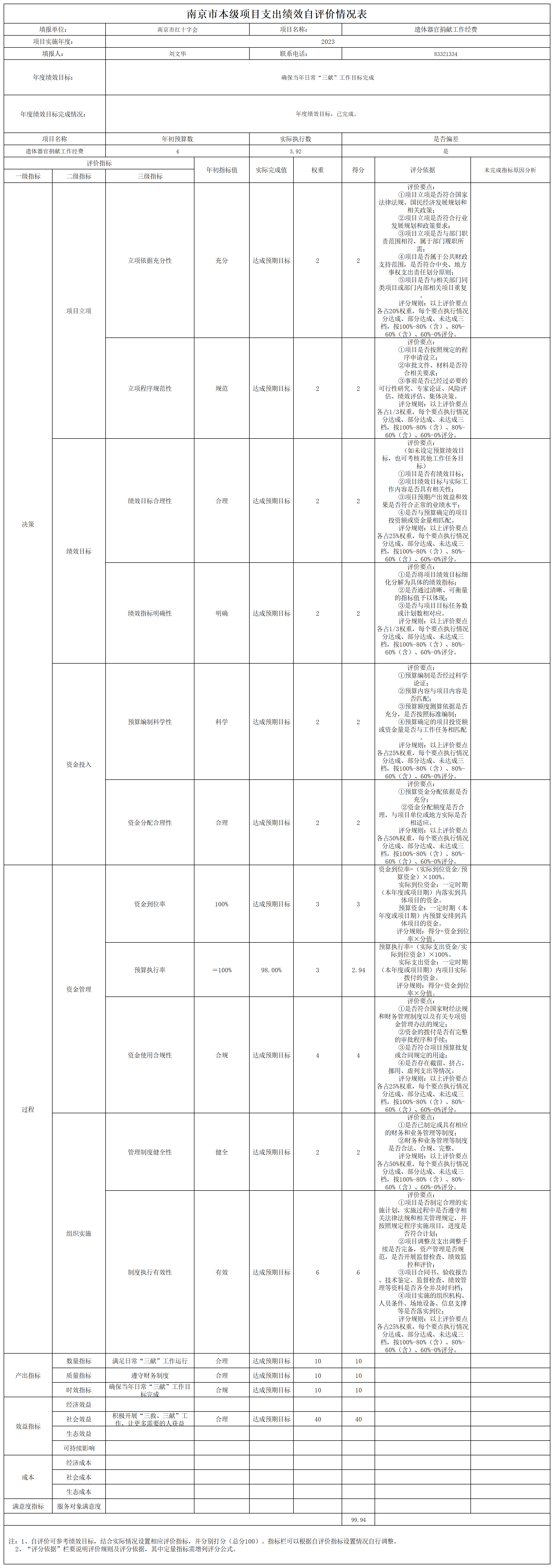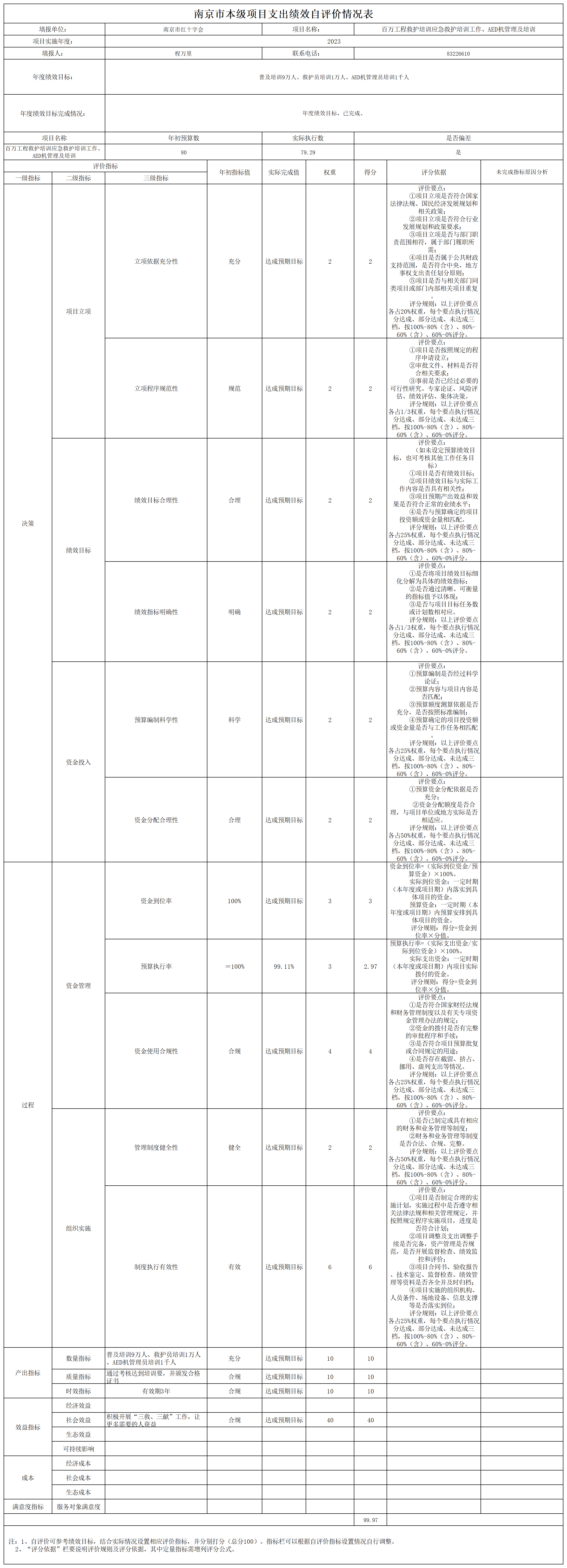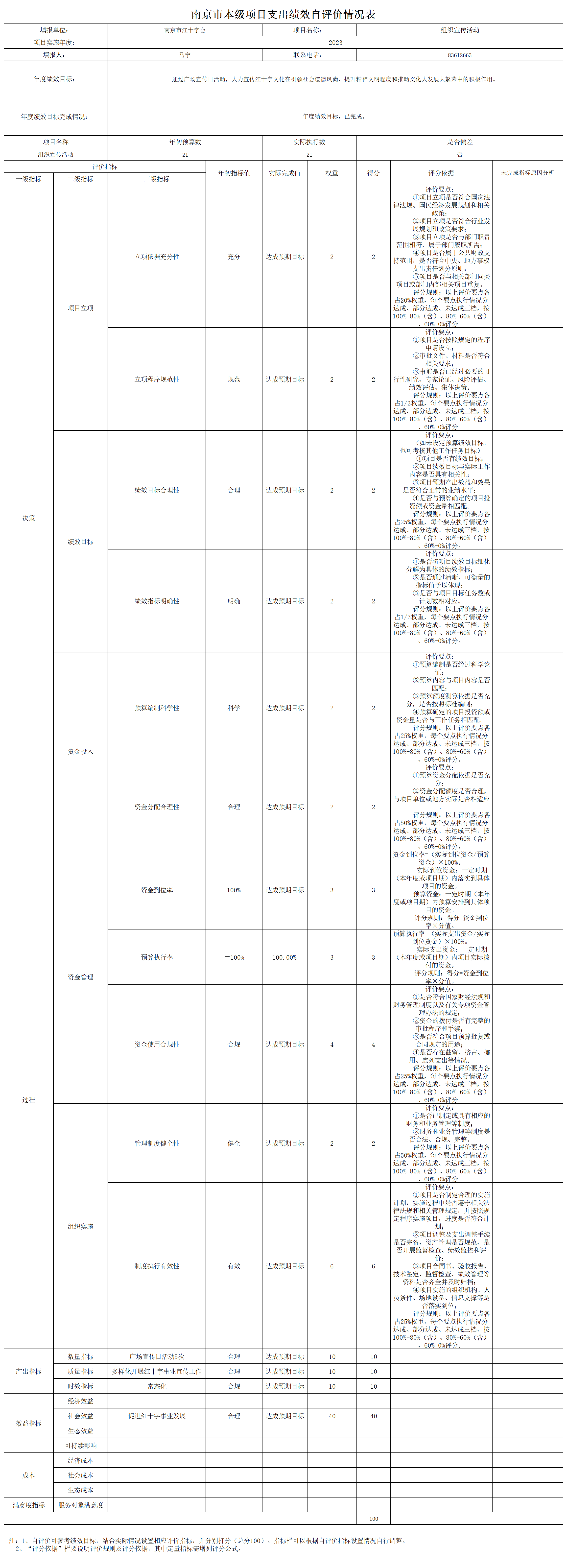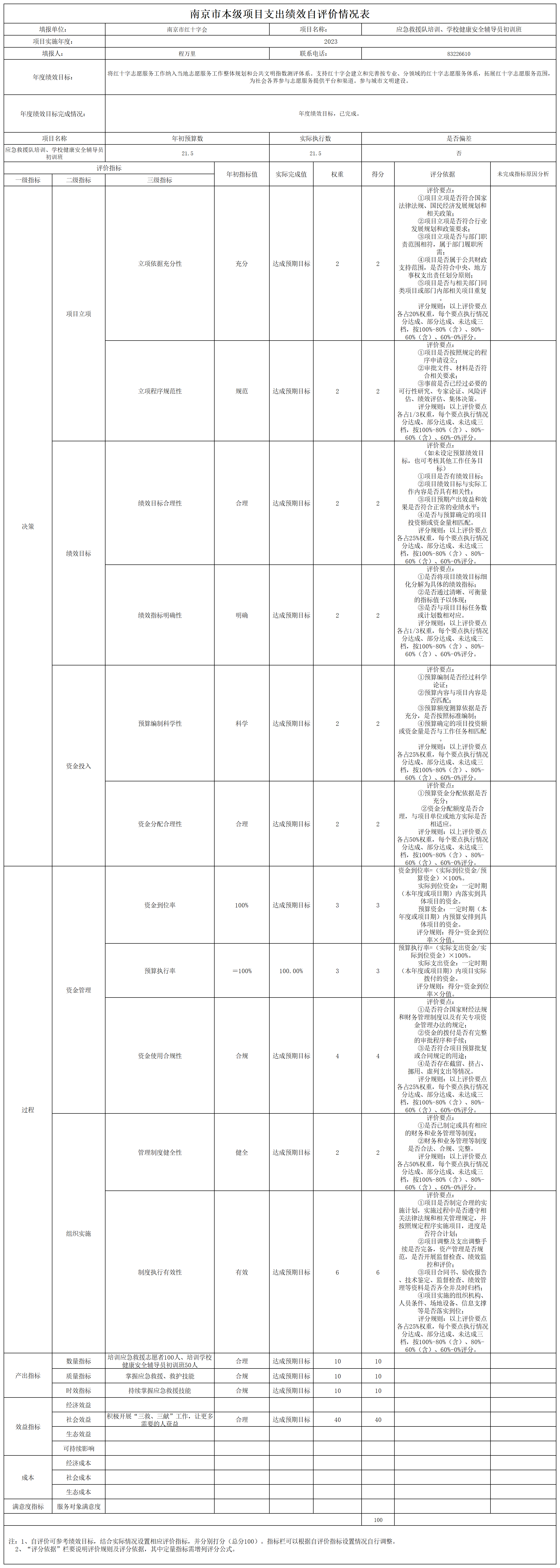 南京市红十字会2023年度运转类-其他项目支出绩效自评表