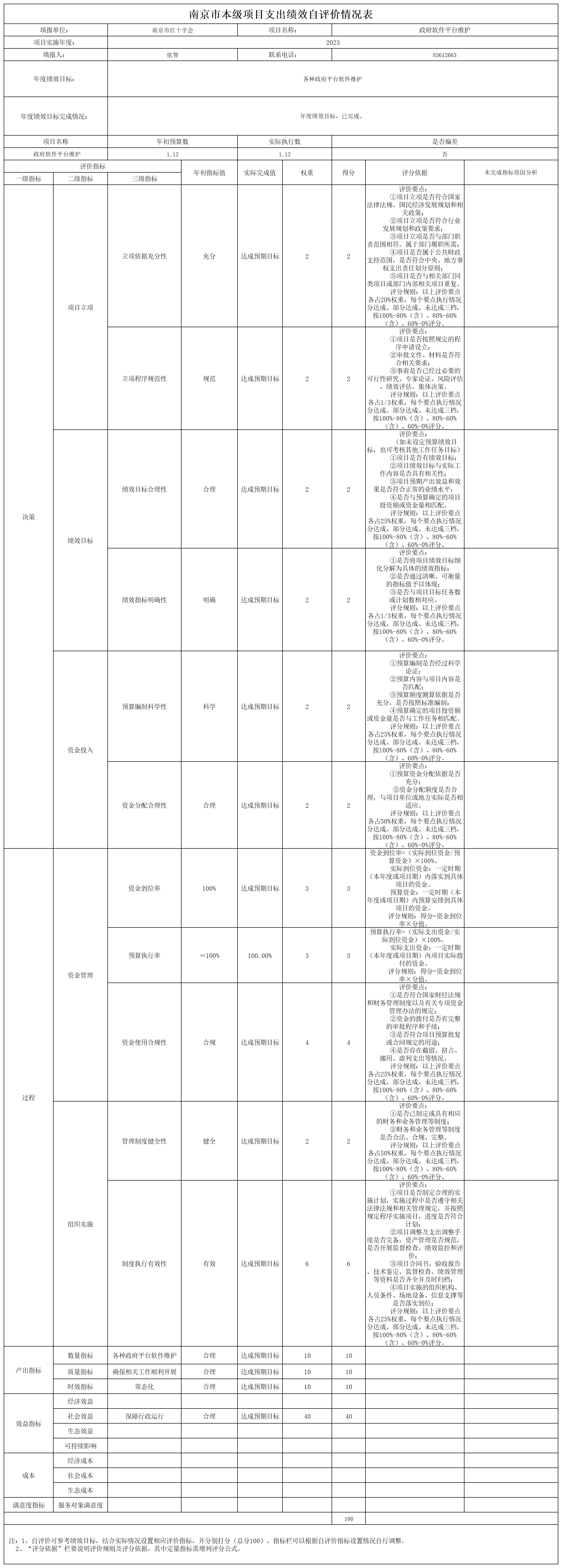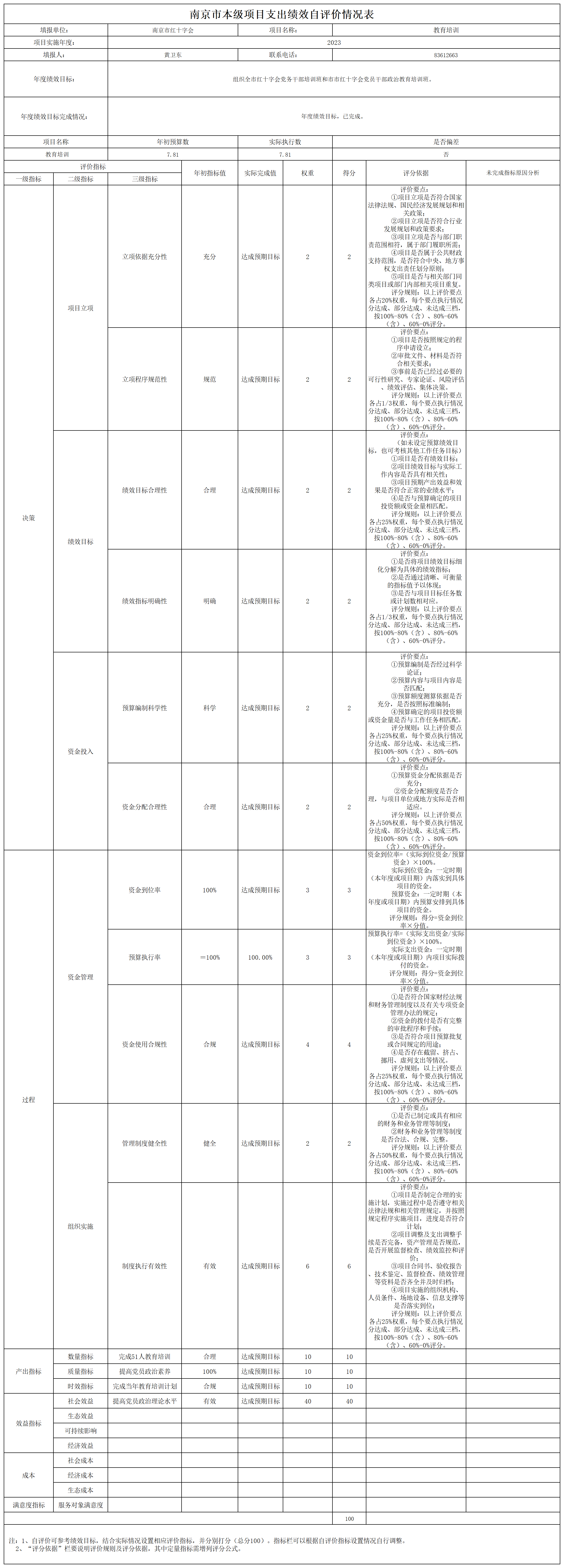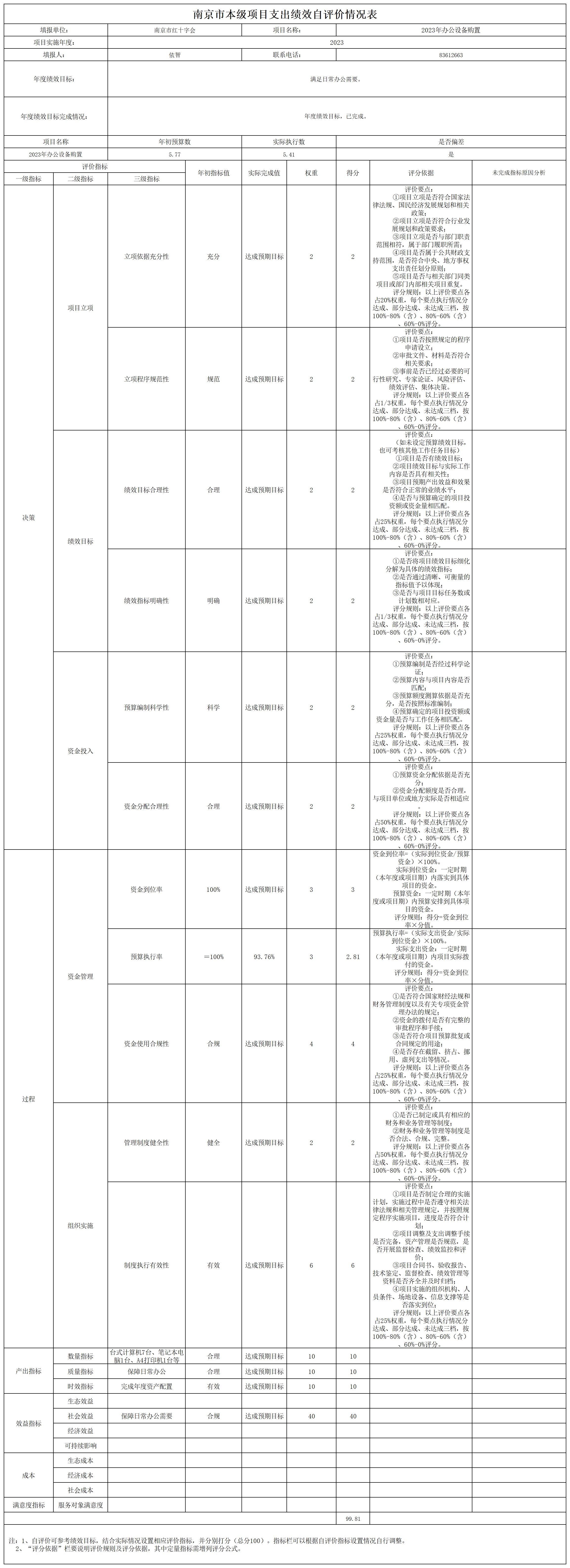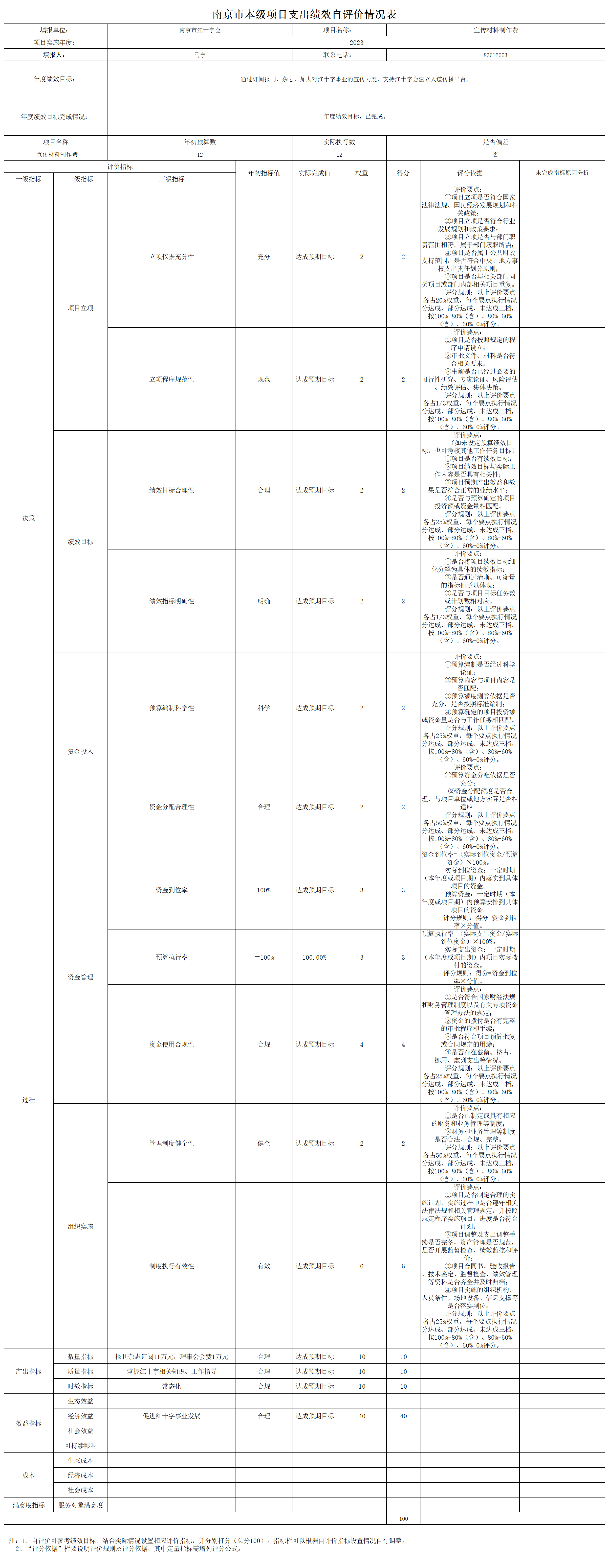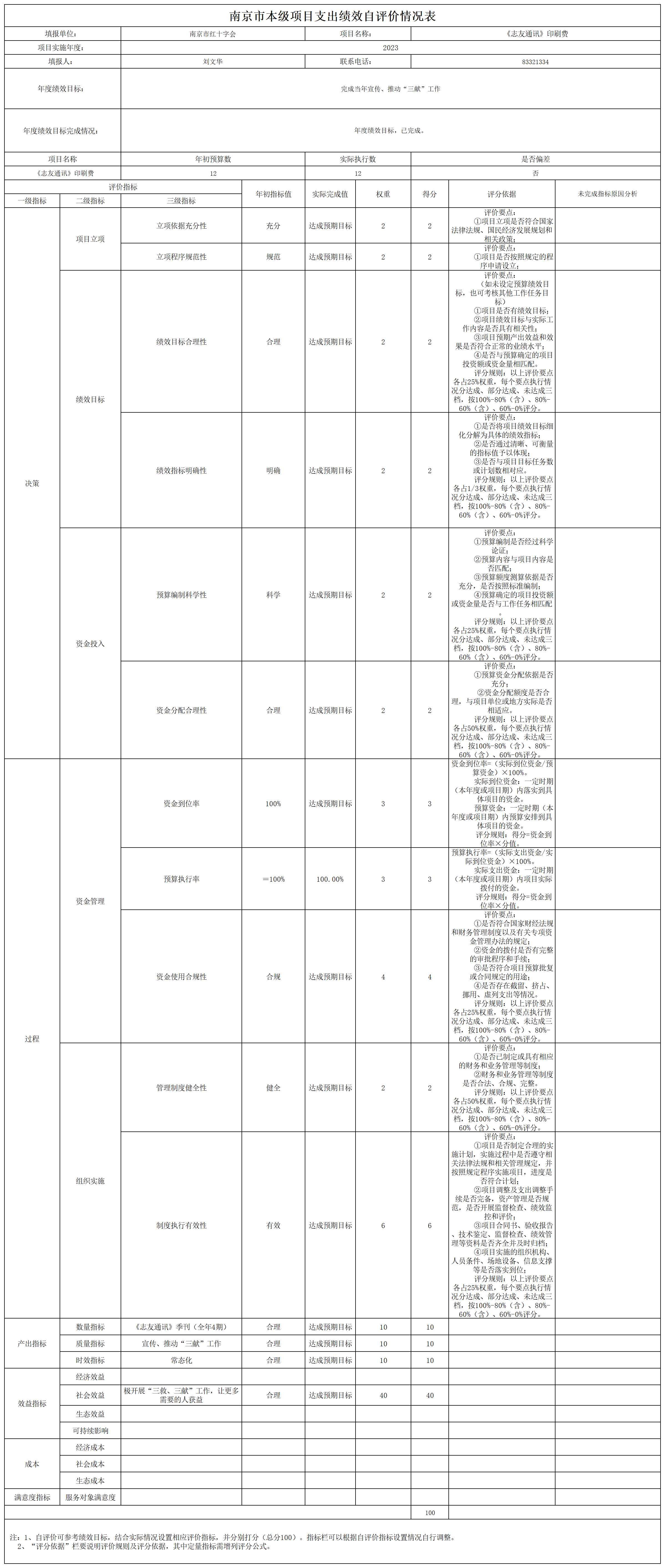 南京市红十字会2023年度运转类-其他项目支出绩效自评表