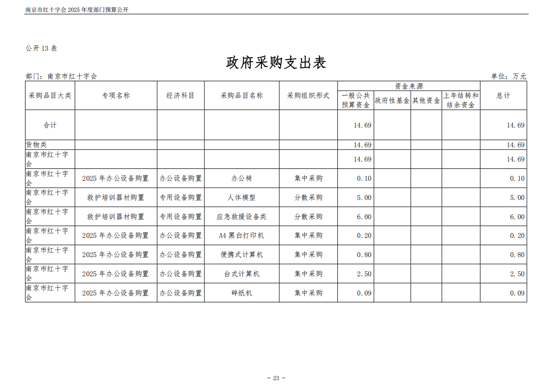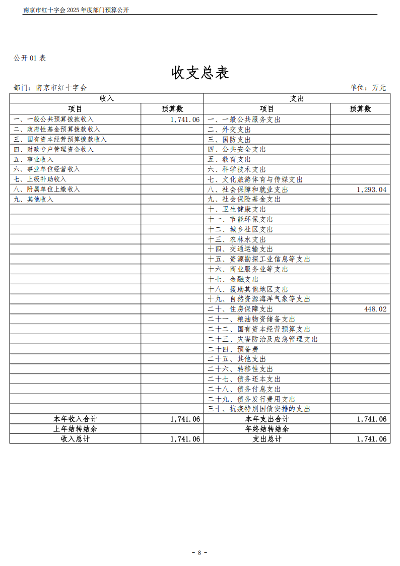 南京市红十字会2025年度部门预算公开