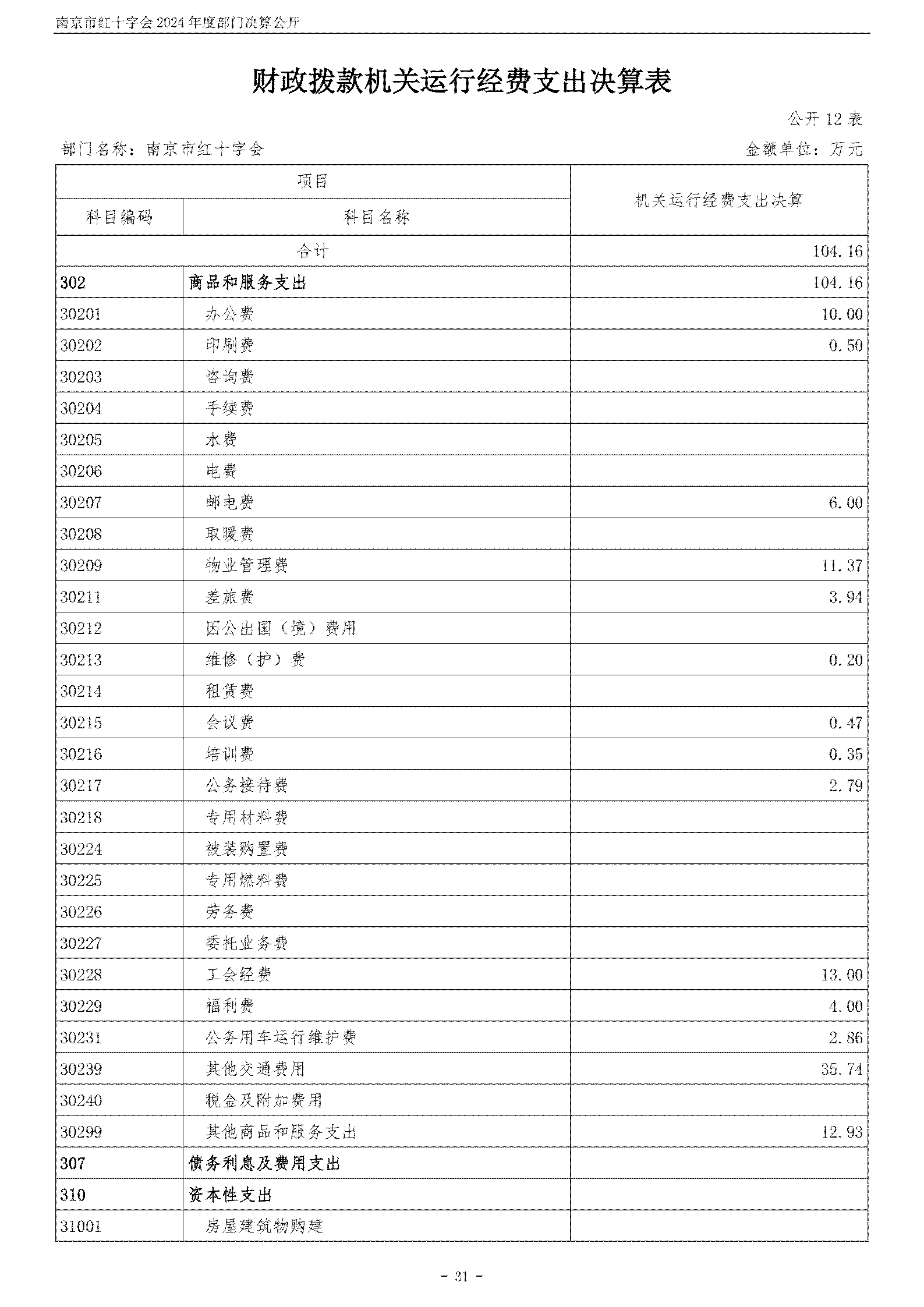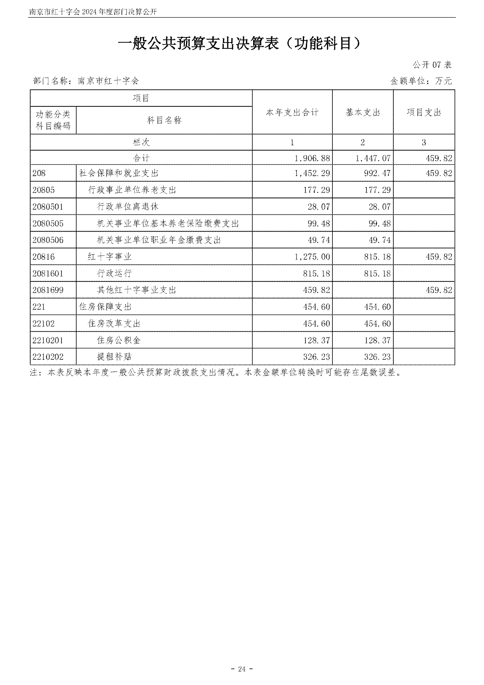 南京市红十字会2024年度部门决算公开