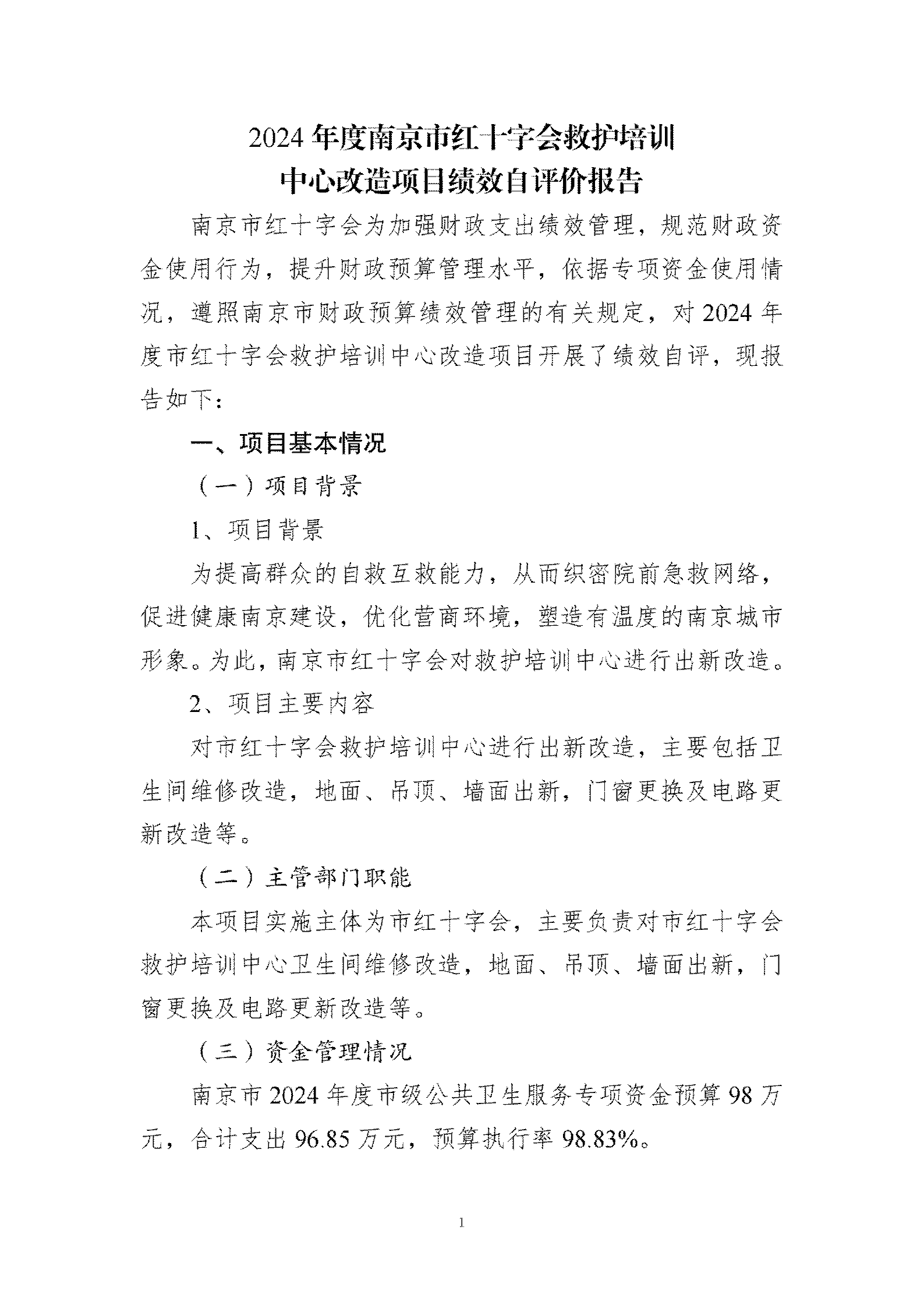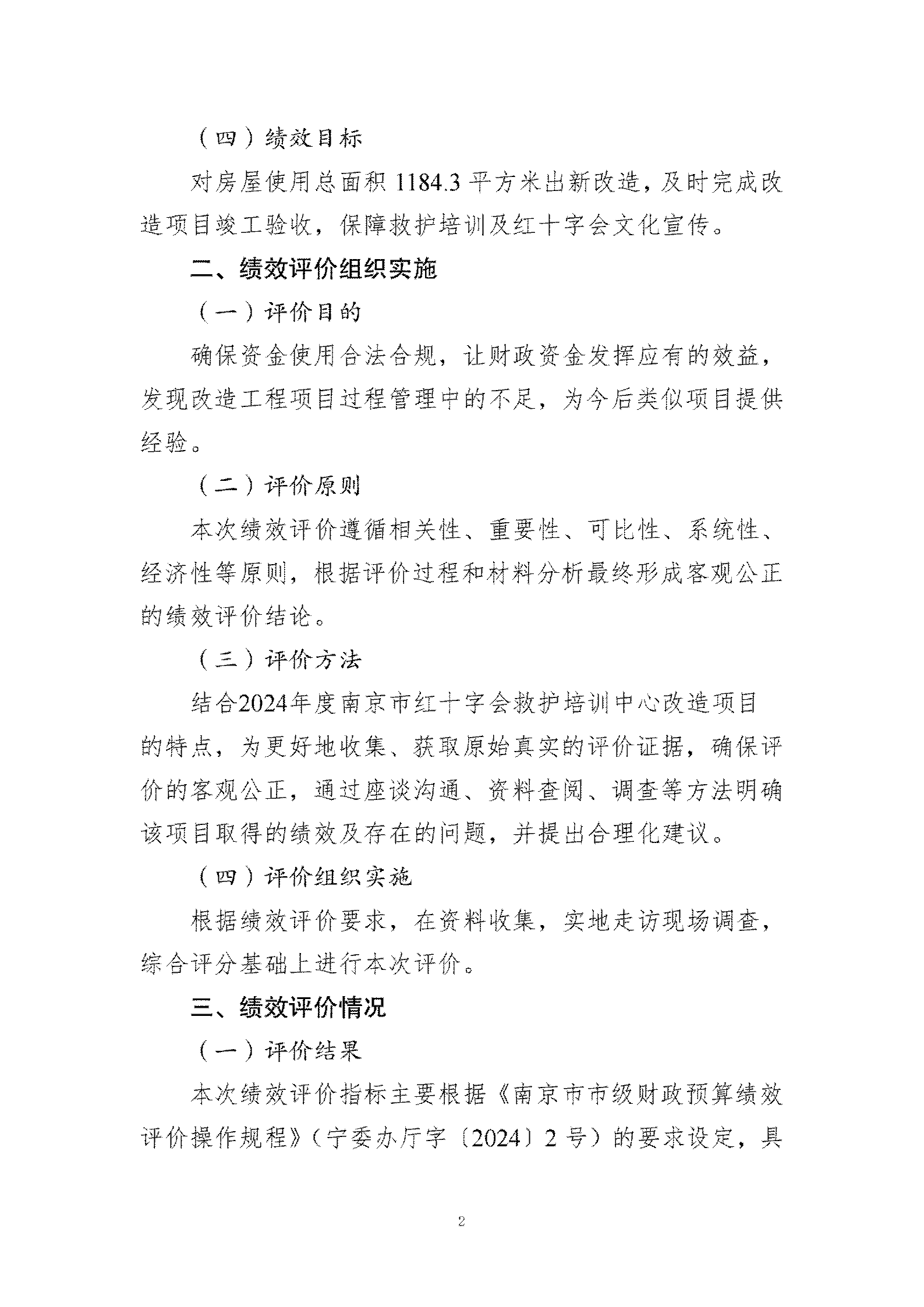 南京市红十字会2024年度救护培训中心改造项目绩效自评价报告
