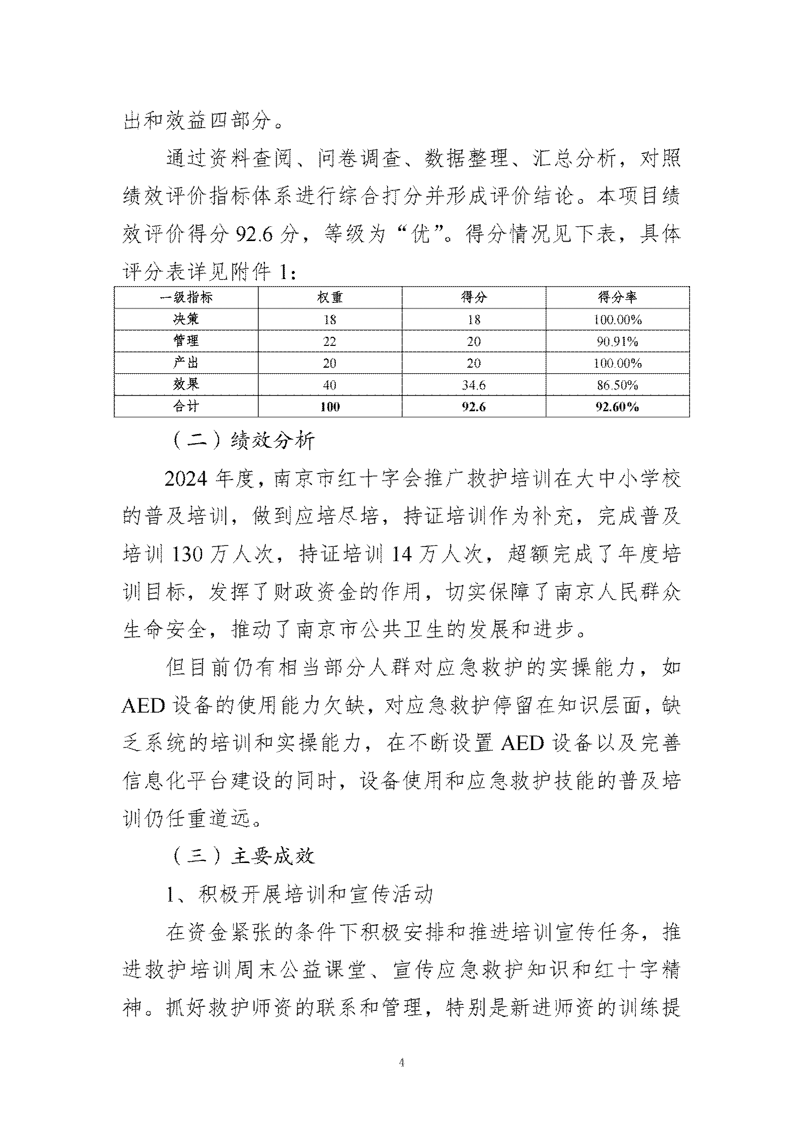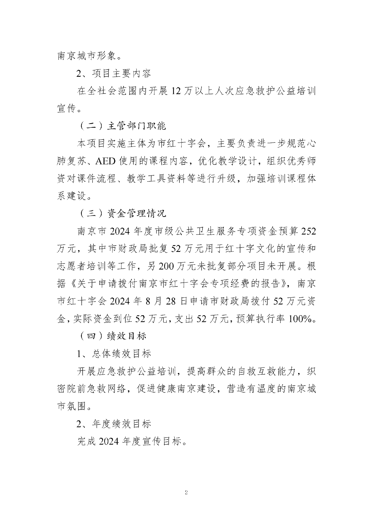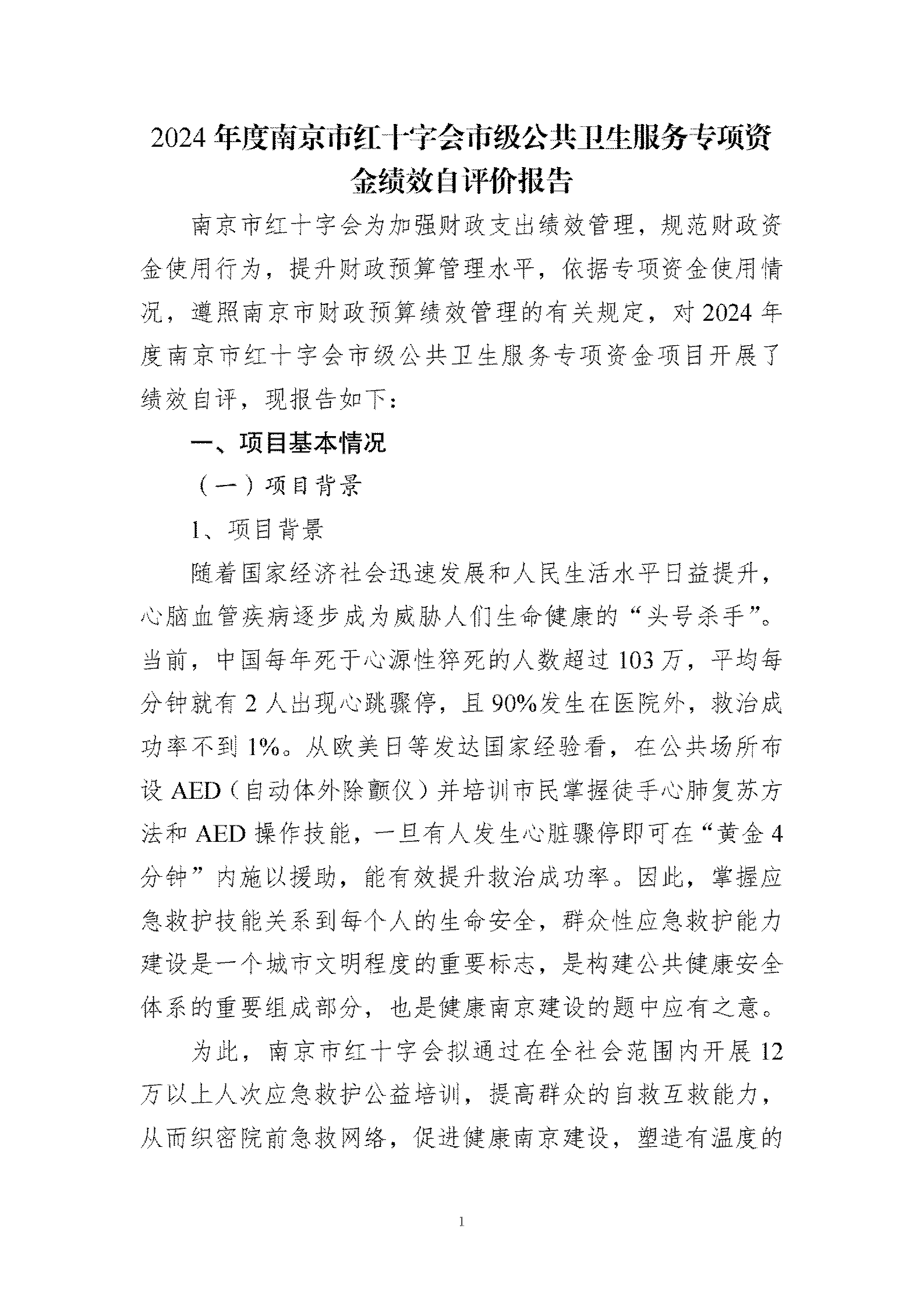 南京市红十字会2024年度市级公共卫生服务专项资金项目绩效自评价报告