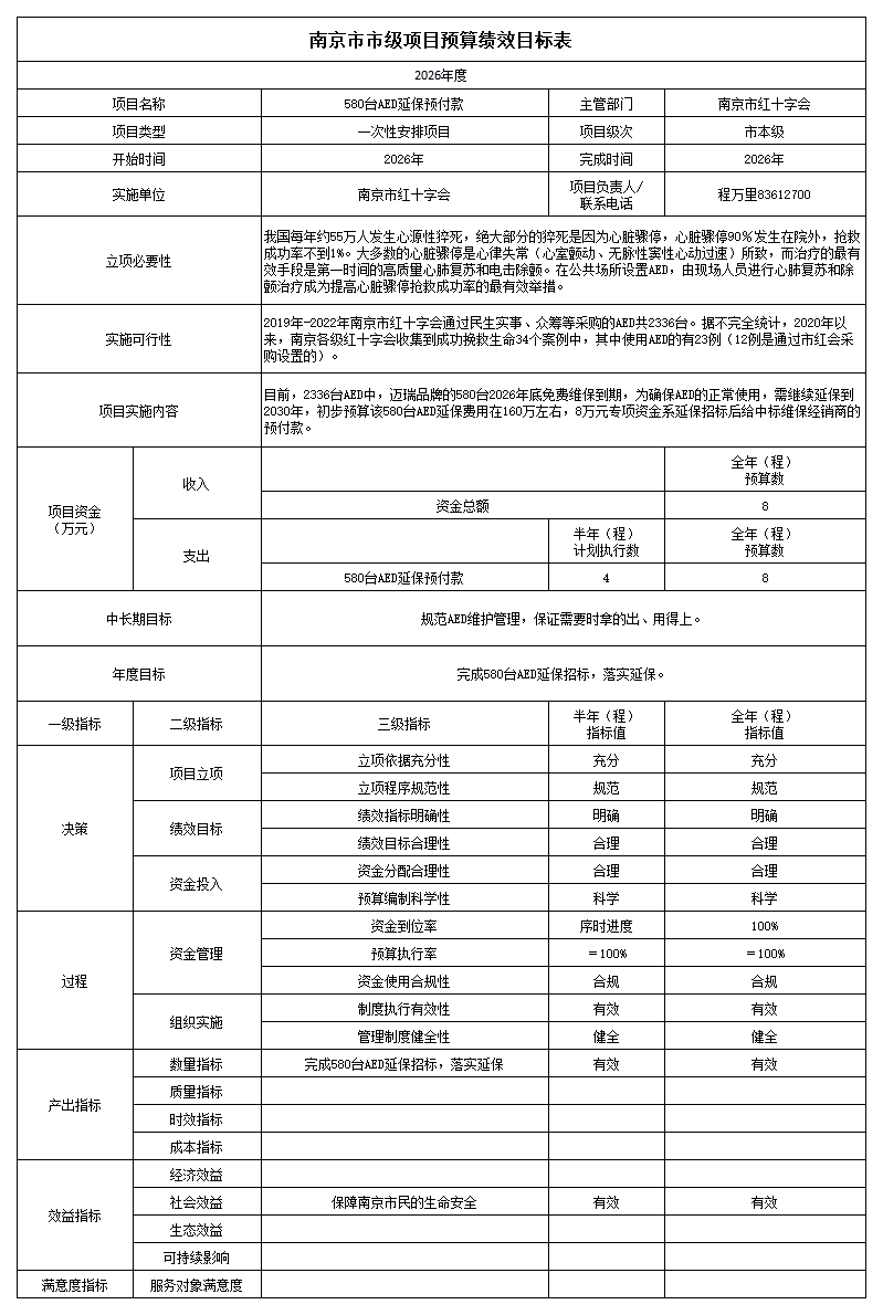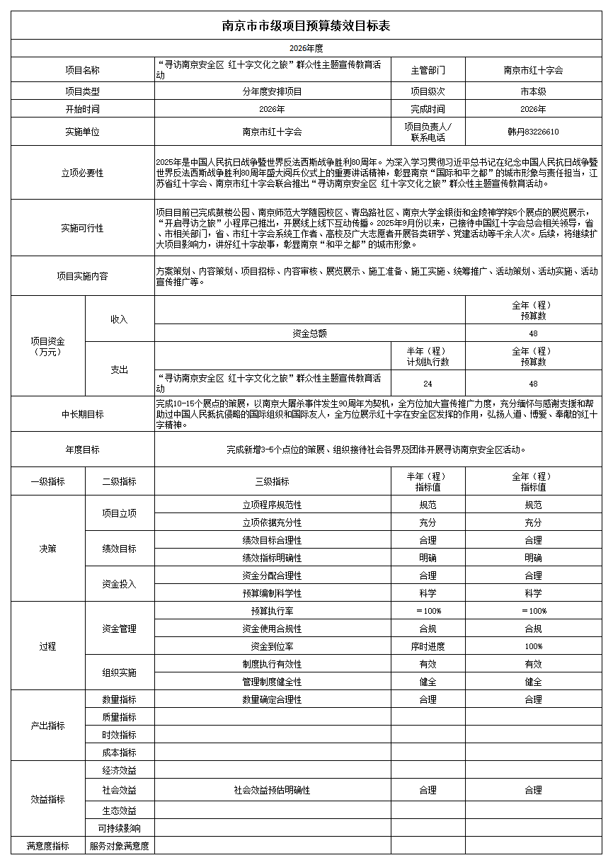 南京市红十字会2026年度特定目标类项目支出绩效目标
