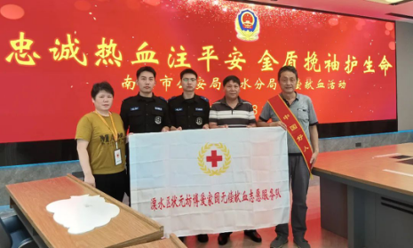 8月13日上午,南京市公安局溧水分局、溧水区红十字会、南京红十字血液中心,联合组织的“捐献血液 分享生命”无偿献血专题活动,在公安分局大厦一楼会议室举行,区红十字会副会长熊爱民莅临现场指导。