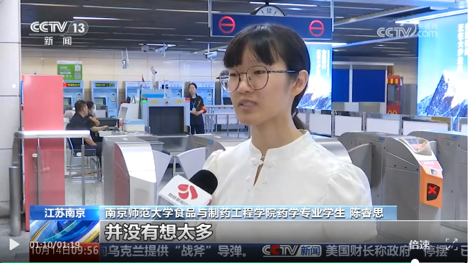 9月30日晚高峰,一名乘客在地铁二号线元通站突然晕倒、心脏骤停,生命危在旦夕。民警、地铁工作人员与热心市民迅速响应,展开教援。在众人合力施救下,乘客逐渐恢复脉搏,一场惊心动魄的生命救援顺利完成。南师学子陈睿思,正是这场救援中的一员。