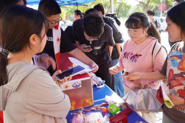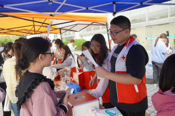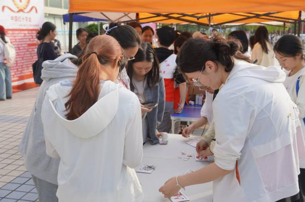 活动期间,校红十字会在人流密集处设置知识问答点。同学们踊跃参与,围绕应急救援、献血献造干、防艾禁毒等红十字相关知识开展知识问答活动。