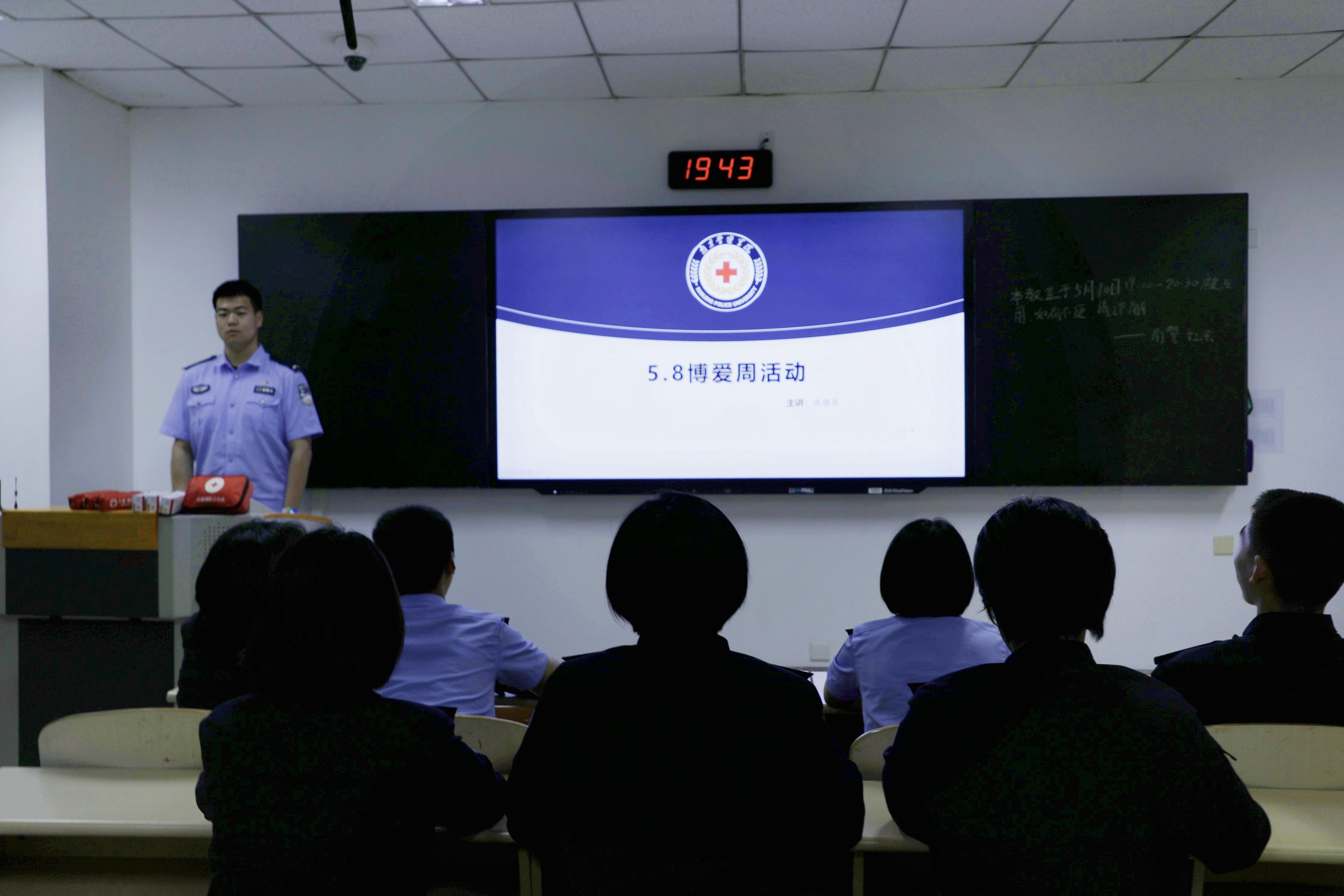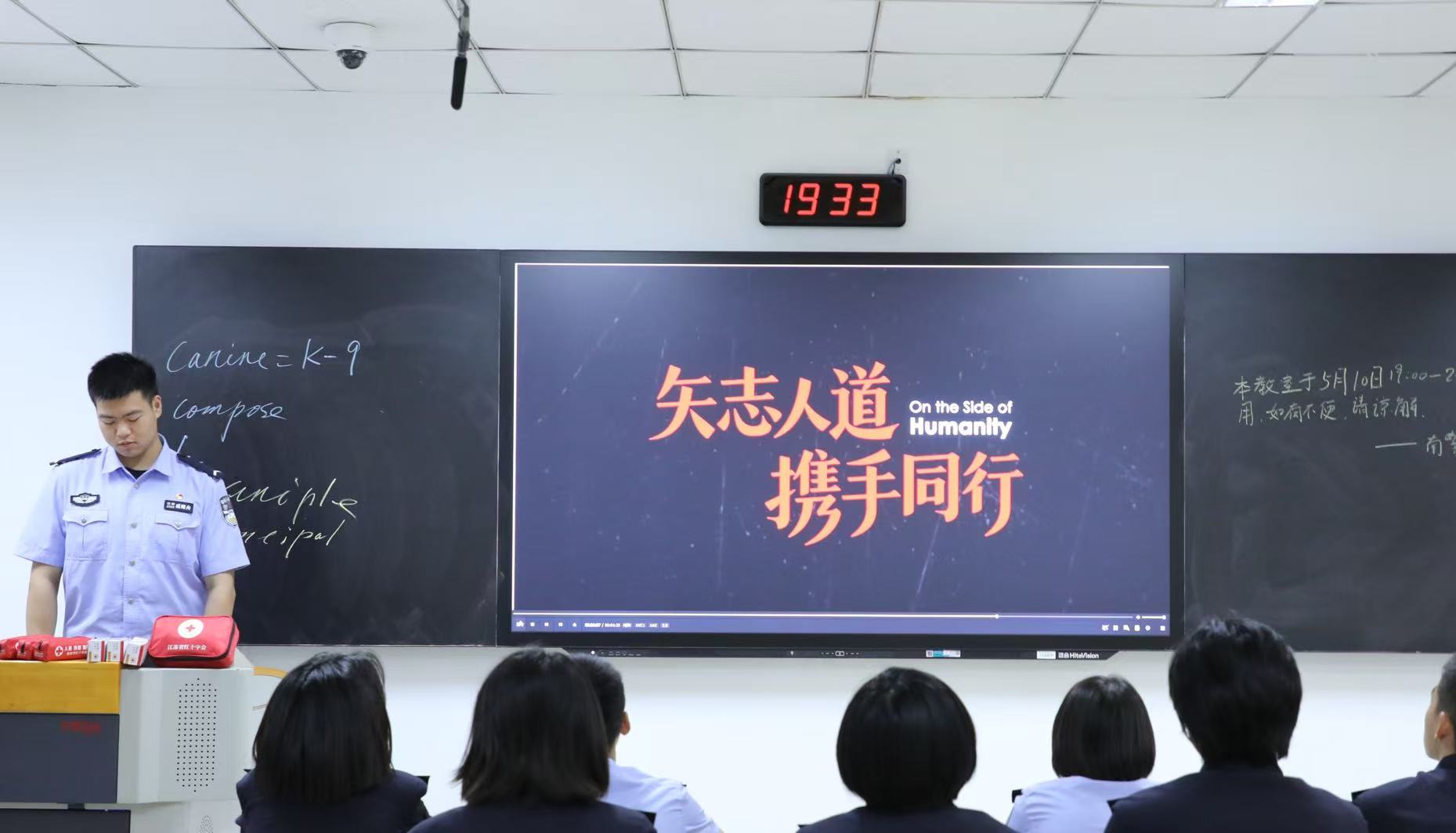 活动最后环节,南警红会社长戚耀舟通过精心设计的PPT,系统讲解了创伤包扎、AED使用、防溺水技巧等实用内容。大屏幕展示“海姆立克急救法”的分解动画,“止血带每40分钟必须放松一次”“AED使用时要确保周围环境干燥”……通过动态PPT演示,将急救知识与警务实战场景深度融合。