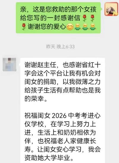 今年初,当有爱心人士致电红十字会表达资助困难儿童的意愿时,工作人员第一时间就想到了这两个孩子。经过精准对接,一位热心女士主动承担起资助外地女孩的重任,而一位先生则伸出了援手,资助南京本地的男孩。