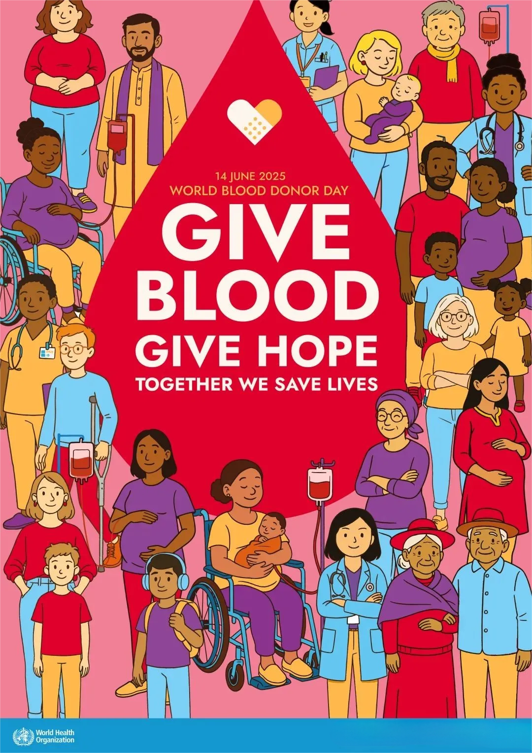 值此6.14世界献血者日来临之际,世界卫生组织发布了2025年世界献血者日宣传海报。