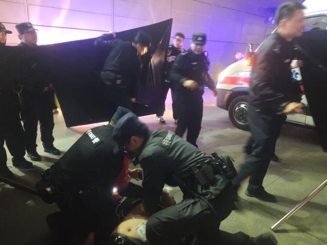 当晚7时许,正在执勤的南京铁路公安处特警支队队员范英轩、张志伟接到群众紧急报警,称一名旅客突然晕倒。两人迅速赶往现场,经检查判断该男子可能发生心脏骤停,必须立即施救。范英轩一边呼喊男子试图唤醒,一边果断拨打120急救电话,随即开始胸外按压并配合人工呼吸。