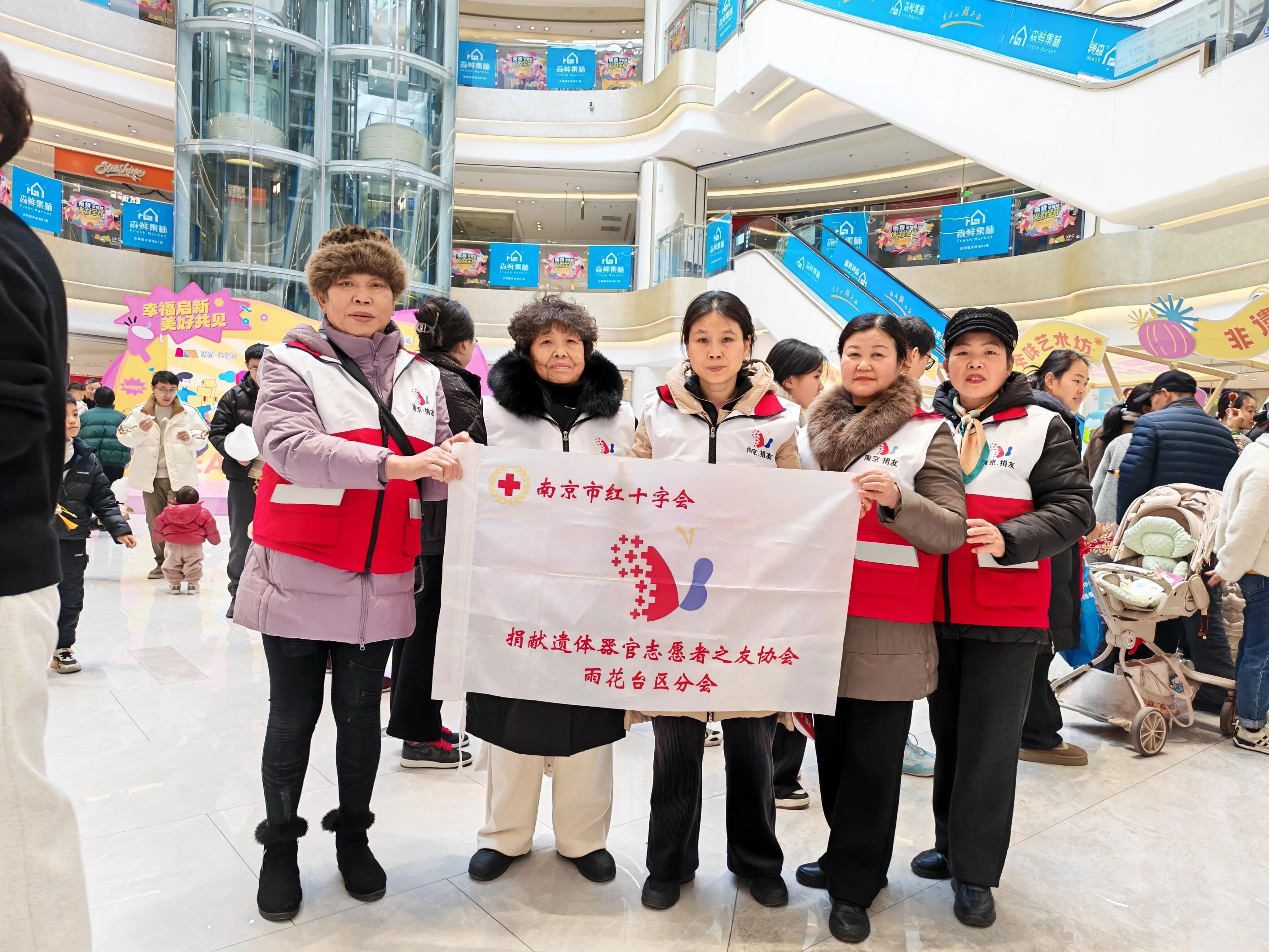 1月24日,冬寒未退,阳光却已慷慨洒落大地。铁心桥街道定坊社区附近的大型商业综合体“幸福城”迎来盛大开业,吸引四面八方的市民前来打卡购物。就在这人流如织的热闹场景中,雨花台区“捐友分会”拉开了2026年首场“三献”主题宣传活动的序幕。