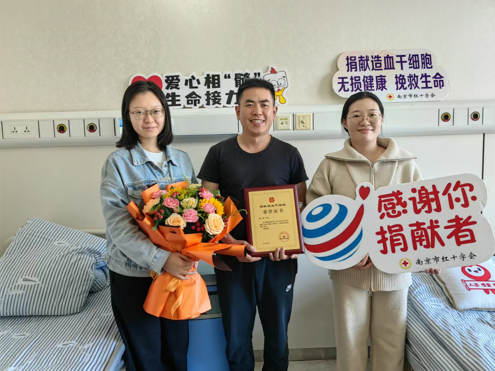 10月29日,蔡先生带着满怀的爱与希望成功完成了捐献,为远方素未谋面的患者送去了生命的火种,成为江苏省第1491位、南京市第209位、六合区第18位造血干细胞捐献者。