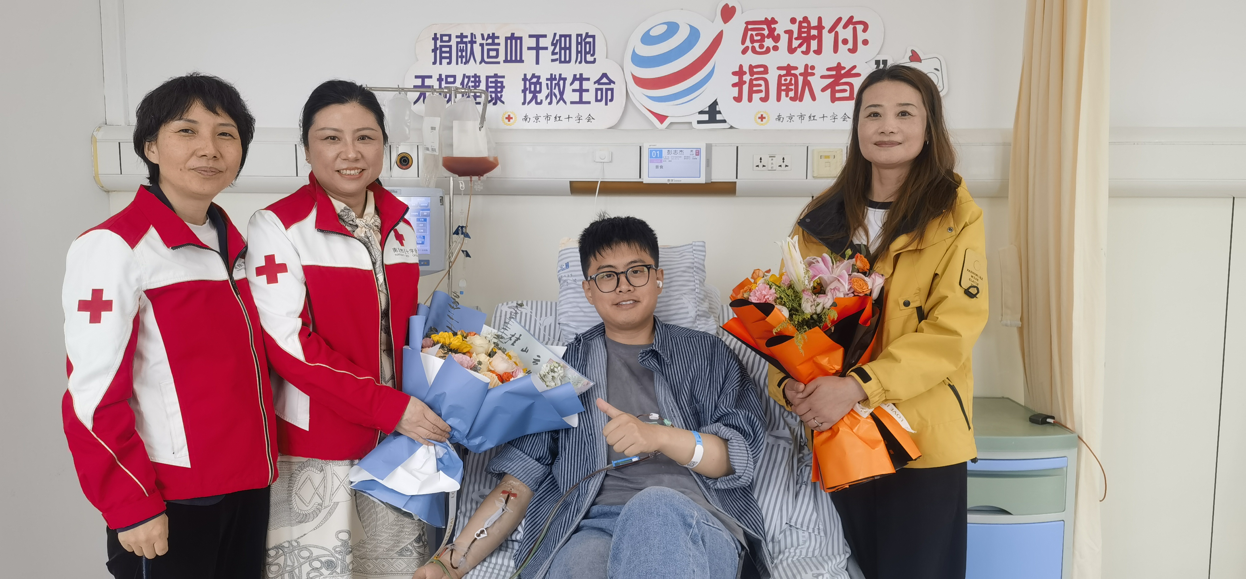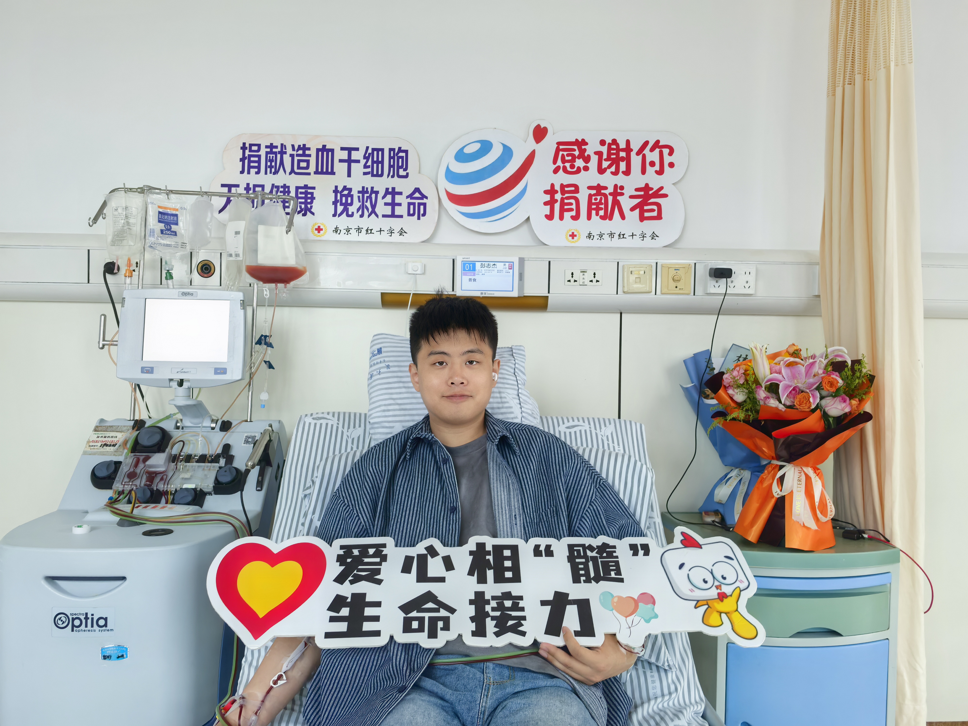 4月21日,南京市第三中学的生物教师彭志杰在中大医院顺利完成造血干细胞捐献,成为江苏省第1593位、南京市第227位、秦淮区第27位造血干细胞捐献者。在采集现场,彭志杰家人、红十字会工作人员及志愿者们共同见证了这一传递生命希望的温暖时刻。